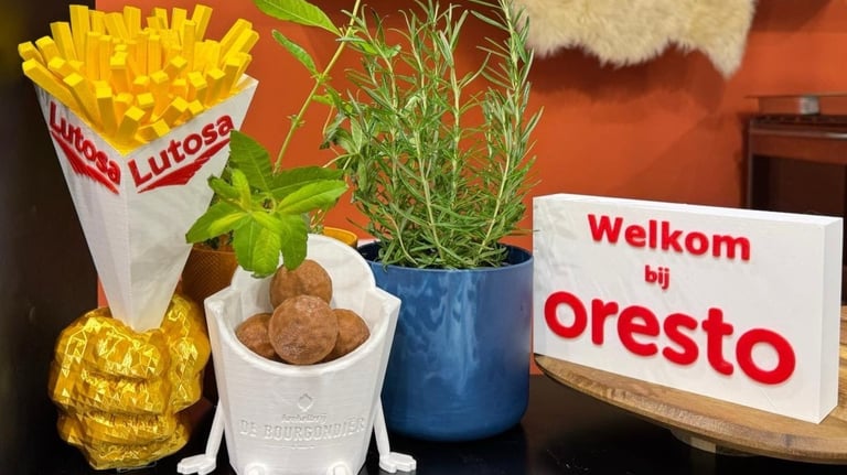 Even the fries bag and Oresto welcome block are 3D printing work